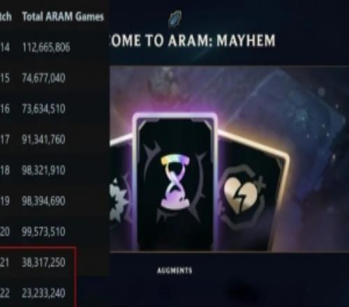 電競(jìng)體育11月25報(bào)道 ??怂勾髞y斗模式上線后,普通大亂斗對(duì)局?jǐn)?shù)暴跌超66%,具體內(nèi)容如下:根據(jù)Reddit用戶(r/ARAM)發(fā)布的統(tǒng)計(jì)數(shù)據(jù)顯示,自全新模式「海克斯大亂斗」上線以來(lái),全球普通大亂斗對(duì)局?jǐn)?shù)量出現(xiàn)歷史性暴跌。