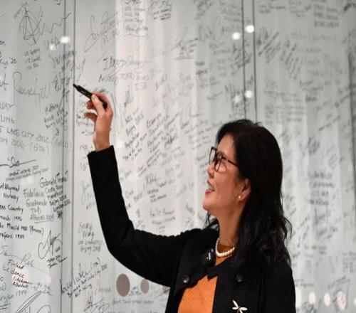 11月24日,郎平頒獎儀式后在簽名墻上簽名。