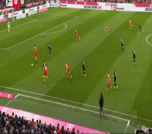 第22分鐘,帕夫洛維奇弧頂處斷球斜塞,卡爾不停球直接兜射遠角,皮球不偏不倚直接擊中了立柱;第28分鐘,迪亞斯中路直塞打穿防守,凱恩反越位切入禁區(qū)低射滑門而過;第35分鐘,比朔夫外圍起腳遠射,皮球折射后再次擊中門柱!在連續(xù)強壓的下,拜仁在半場結束前成功扳平,第44分鐘,金玟哉過了中圈后長傳送入禁區(qū),迪亞斯在身體失去重心前將球回做,格雷羅反應迅速立馬跟進抽射破門,1:1!