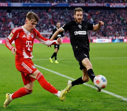 全場下來安聯(lián)球場的門柱拒絕了自家球隊的3次絕佳得分機會,好在幸運女神還是站在了拜仁這邊。第93分鐘,拜仁發(fā)動最后一攻,基米希右路接到格雷茨卡的分球后果斷傳中,迪亞斯中路高速前插沖頂頭球頂入網(wǎng)窩,2:1!第95分鐘,圣保利全體壓上讓拜仁打出反擊,雅克松單刀赴會將比分定格在了3:1!憑借最后時刻的2粒進球,拜仁3:1取勝,送給對手9連??;同時拜仁在德甲創(chuàng)下連續(xù)44輪排名榜首的紀錄,打破他們自己在1973年創(chuàng)造的紀錄。