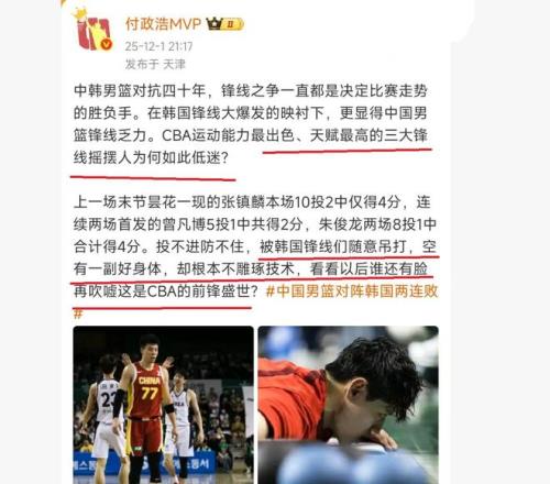 國(guó)內(nèi)籃球解說(shuō)員付政浩,也是對(duì)中國(guó)男籃的表現(xiàn)進(jìn)行了點(diǎn)評(píng),他認(rèn)為中國(guó)男籃與韓國(guó)隊(duì)的比賽,鋒線是決定比賽勝負(fù)的關(guān)鍵!中國(guó)男籃擁有三大頂級(jí)鋒線球員,號(hào)稱運(yùn)動(dòng)能力最出色,天賦最高,然而,三大鋒線沒(méi)有一個(gè)表現(xiàn)正常。