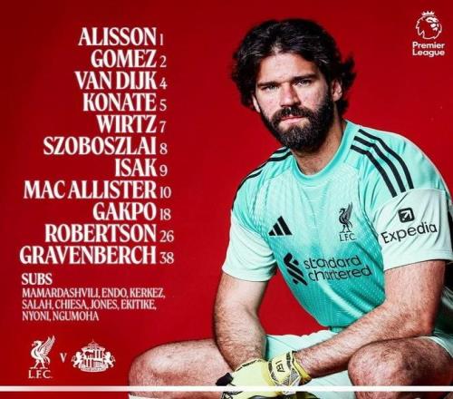 利物浦vs桑德蘭:伊薩克搭檔加克波,維爾茨、索博斯洛伊出戰(zhàn)